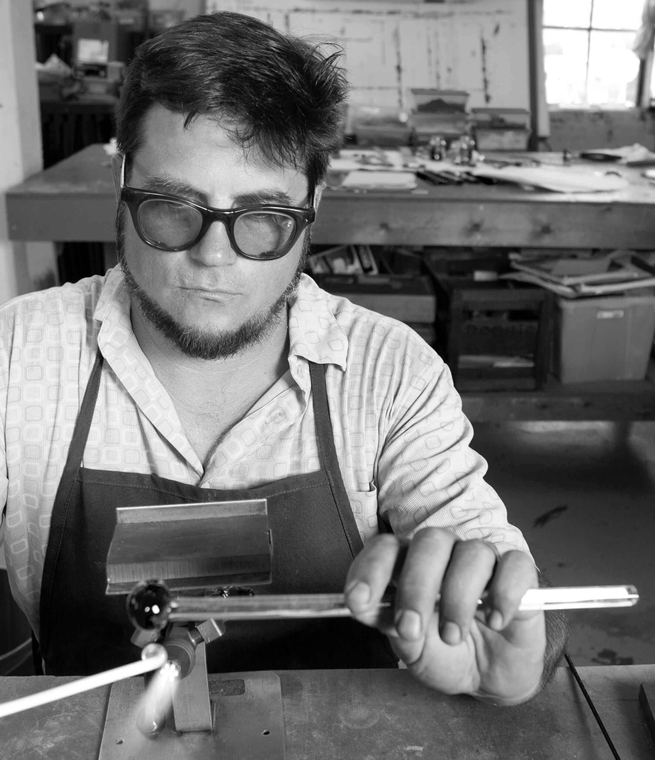 The brothers opened their first exhibition in the early 1990s at the Galería de la Raza in San Francisco, followed by a museum exhibition in Arizona. Since the 1990s, the brothers have continued to collaborate, creating public and site-specific artworks, participating in exhibitions in the United States and Europe, and even starring as guest judges on Netflix’s “Blown Away” glass making competition. Today, their artwork continues to utilize various glass techniques and mixed media to combine ancient iconography with symbols of our contemporary consumer culture, play with humor and irony, and mesh experiences from both sides of the U.S. Mexico Border.