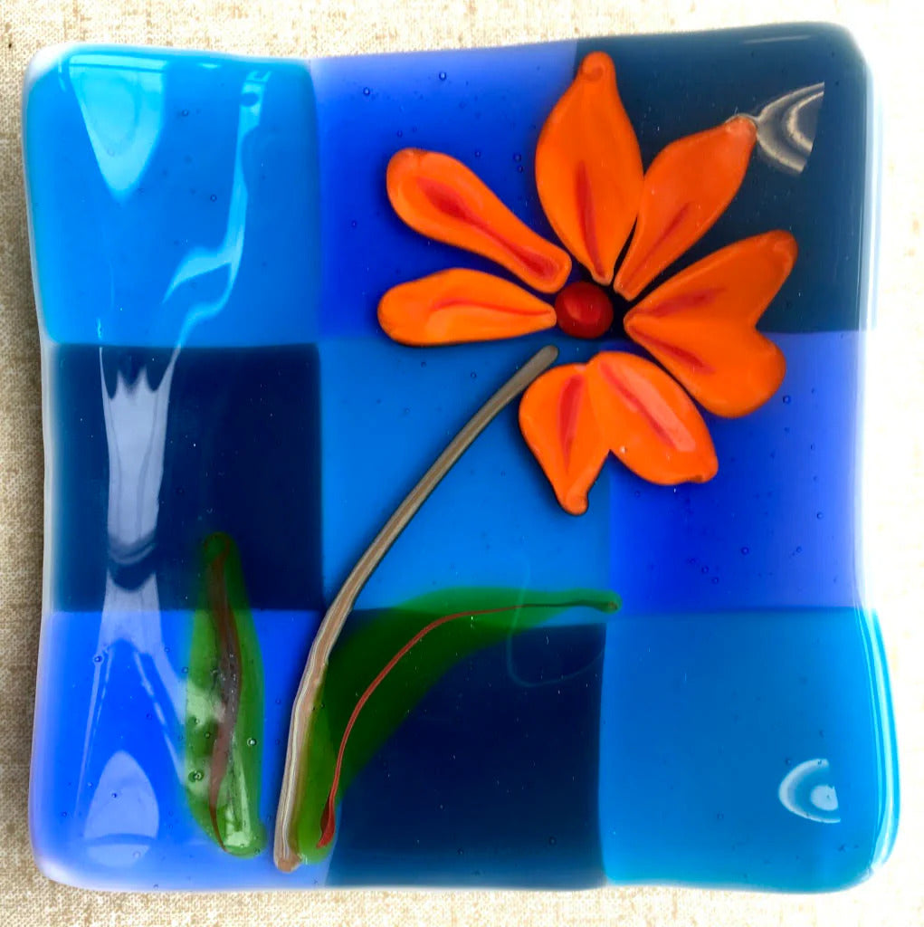 Explore the art of fusing and slumping glass in this beginner-friendly kiln class. Over three hours, you’ll learn the fundamentals of glass shaping and kilnwork while designing your own 5" x 5" glass tile, which will be slumped into a functional catch-all dish.