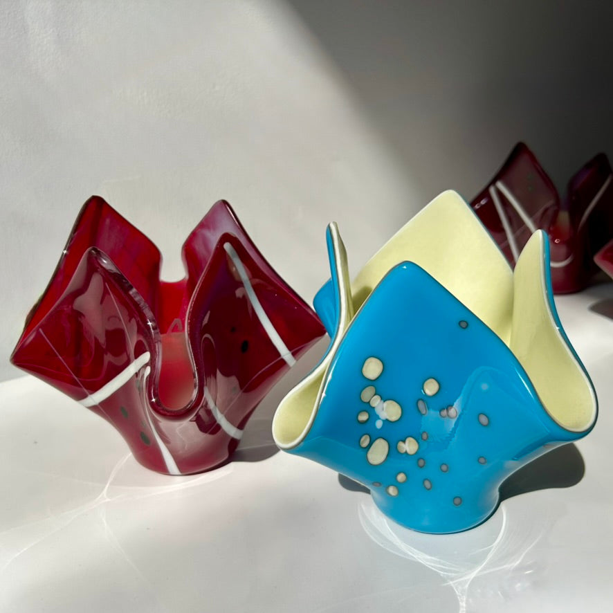 In this one-day class, you'll explore glass fusing and slumping techniques to create one-of-a-kind kiln-formed candle holders. Strengthen your technical skills, expand your design capabilities, and experiment with accessory glass to produce your own handmade 8" x 8" glass tile. The glass tile will then be slumped into a functional candle holder for you to pick up within the next week. Join us at Potekglass this winter to create a beautiful hand-crafted holiday present for yourself or your loved ones!